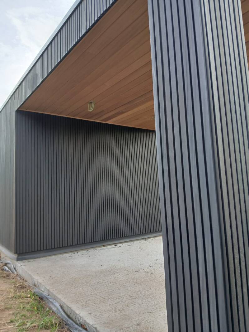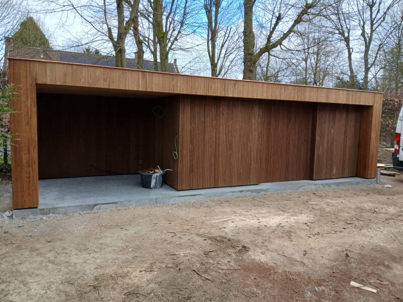 Deze keer koos de klant voor thermowood ayous, stijlvol zwart gebeitst aan de buitenkant en met een houtkleurig ayous plafond aan de binnenzijde, een prachtige, warme combinatie.